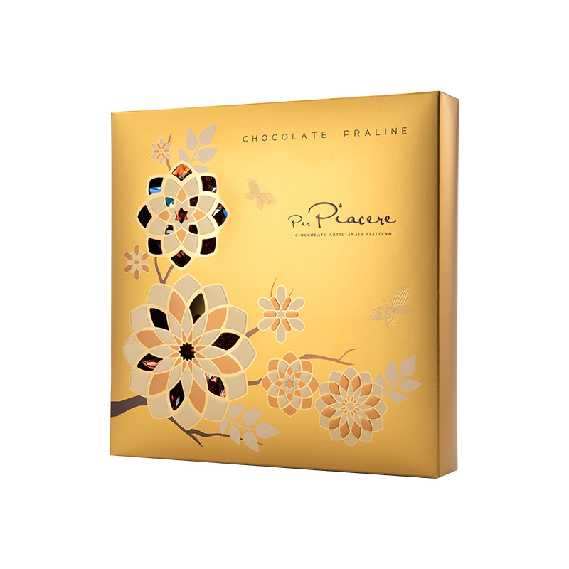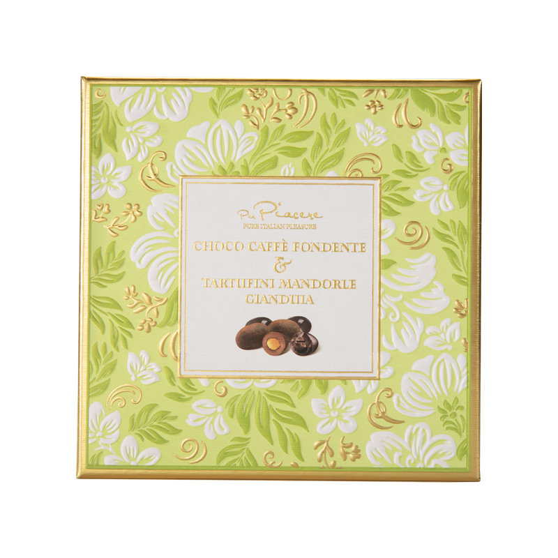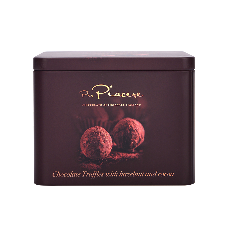 Per Piacere Whiskey Chocolate Praline (Solid Alcohol Praline) Elegant Italian Scene Tin Box (Emerald Green)