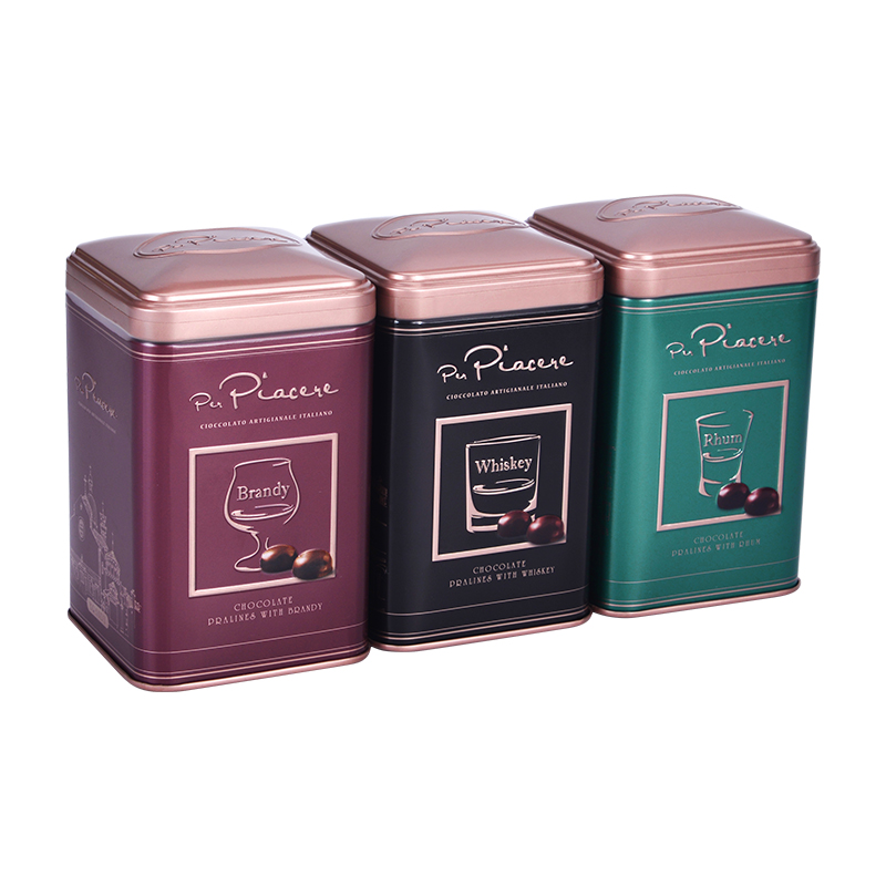 Per Piacere Rum Chocolate Praline (Solid Alcohol Praline) Elegant Italian Scene Tin Box (Basil Green)